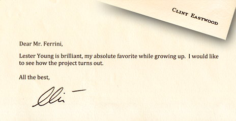 The funding will enable me to make steady progress. The next phase will be to take this material, much of what you will see on the site, and assemble it into a trailer so compelling that I can take it to Clint Eastwood or Danny Glover for completion funds. Both these men have an interest in Lester Young.